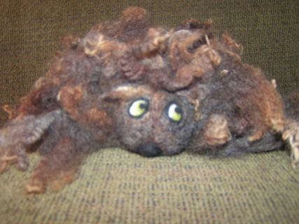 After looking at Birgitte Krag Hansen’s website quite a while ago, I rememberd these hairy things that a group of her students made. So I made this little guy. Then I went back to the site to find out what they were called and they looked like little hairy people and were called “Nullermen”. So, this is my “Nullerbug” as he looks more like a bug to me.