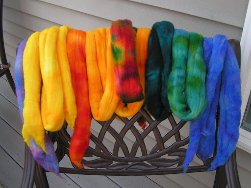 Dyed wool for cat toys Posted on July 16, 2007 by ruthlane under Uncategorized Here are the colors I dyed to make some more cat toys – most is mixed breed wool but the yellow is merino. My sister Rebekah helped me dye the wool. We used the “paint and steam” method. Share this: Click to share on X (Opens in new window) X Click to share on Facebook (Opens in new window) Facebook Click to share on Pinterest (Opens in new window) Pinterest Like Loading... Related