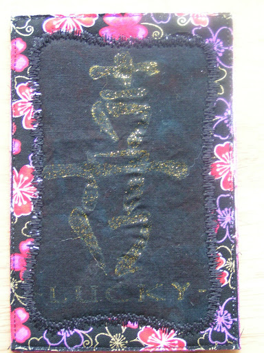We got back from vacation (perhaps more photos of that later) and I had two more postcards waiting for me. The first one is by Mary Ann from California. It has an Asian theme with the symbol for lucky. Thanks Mary Ann!