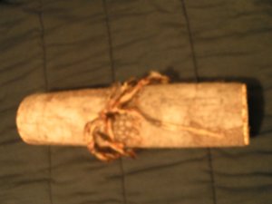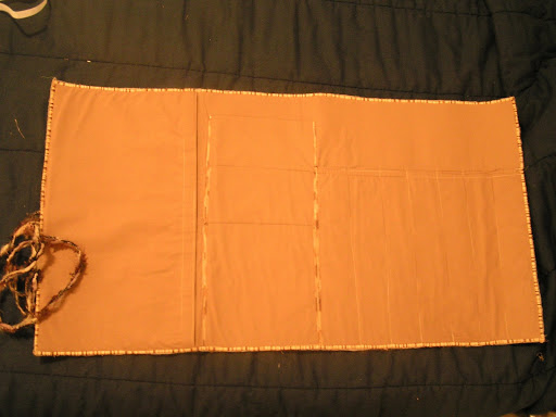 I finished the knitting needle case for my friend. Here is it rolled up. (poor picture, sorry)