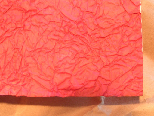 The TIF paper mock up is going well. I started with watercolor paper and covered it with crumpled red tissue.