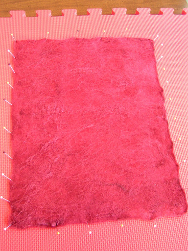 I worked all day today on my challenge piece. First I laid out my wool and a little silk on top and wet felted it.