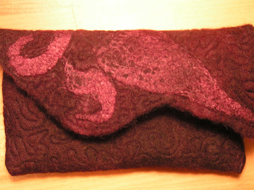 Here’s the last felted purse that I made for my blogiverssary give away. Lynda finally received it so I can show you a photo. And just a note about TIF for April. The theme is change. I have heard about change everywhere – presidential candidates are “for change”, global climate change, change in the weather etc. etc. Actually, I like change. I have always believed in life long learning and continuing to strive to reach your goals. The only way you can do that is to change. So I’m still thinking how to design those thoughts into fiber. More later!