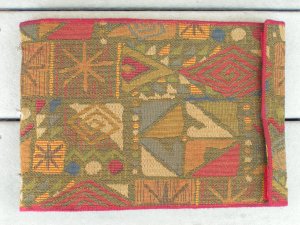 A closeup of my paper design. I was planning on taking this design, cutting it up and using different techniques to change each square. Then sewing the whole piece back together. The idea was to work in fabric, but I didn’t want to go and buy anything new. So I searched high and low and I have no fabric in these colors. So I looked further and found my paper towel “paint/dye rags” and I have several that fit the color scheme. So I’ve started with those and I plan to now make paper fabric out of those with muslin backing. Then I’ll continue along the same plan.