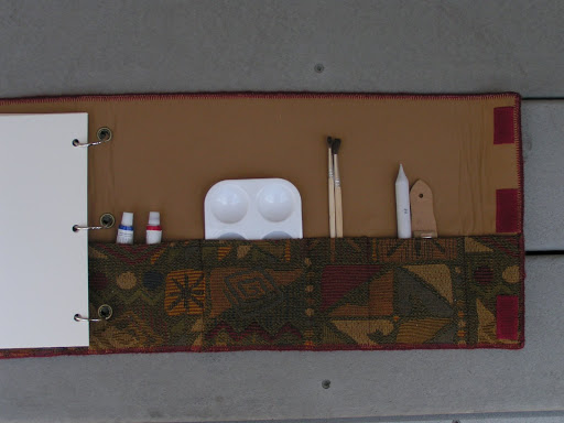 And the inside right cover with my watercolor supplies and a few extra drawing tools. I am currently working on improving my drawing skills. I got a book from the library called “Drawing for the Absolute and Utter Beginner” by Claire Watson Garcia. I highly recommend this book. I fit the category for this book perfectly but even after only a couple of weeks of working, I feel that I can draw much better. When I get brave, I’ll show you one of my sketches.
