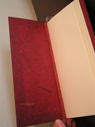 Here’s the lining of red hand made paper. This journal has three signatures.