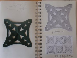 Here are some more exercises from Sharon’s studio journal course. We are cutting out various shapes and then using those to make patterns or find other design elements.