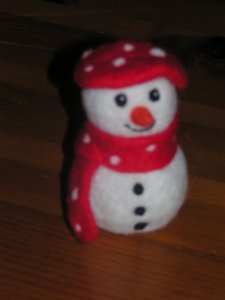 I got a package all the way from Finland today. This is for the Felting Forum Ornament Exchange. I got a needle felted snowman, some lovely red wool and a cute little card from Amanda.