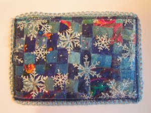 Why Sinful? Well… This is kind of like Wordless Wednesday or Thoughts for Thursday. I got to stay home alone as I sent hubby off skiing again (I went yesterday) and I spent the whole day playing with fiber so it felt kind of sinful to be able to have 2 days this week to work on my projects. This lovely postcard came from Ilse yesterday. It fits in with the blue theme and looks like the snow we have outside. Thanks Ilse!