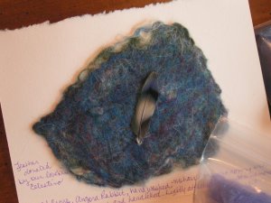 The felting forum had a fiber exchange and so I sent off a “baggie” of various fibers. This is what I got from Jessica in return. Not exactly a baggie is it? But all wonderful fibers and lots that I haven’t tried, so I’ll have to experiment. Thanks Jessica!
