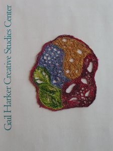 I really enjoyed this class and so want to continue on to the Level II. That class lasts for a total of 18 months and you go back every 3 months or so and have 5 days of instruction with work at home in between. The next level II starts this March and there is no way with my work load that I can do it. But I am going to work towards doing it in another year to year and a half. These used to be City and Guilds classes but she has stopped getting the certification for these. But they are bases on the same concepts. The plan right now is to practice these techniques over the next three months and take them further into using my hand made felt for base as well as silk paper and other techniques. So you’ll be seeing more machine embroidery on future work. Stay tuned!