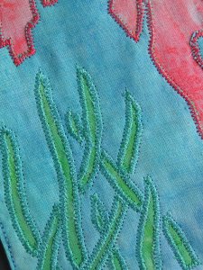 Here are the two pieces that I did for my first homework assignment, cut back applique.