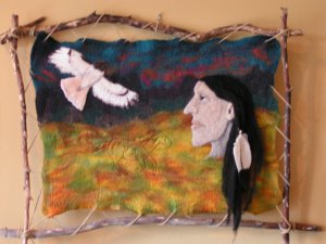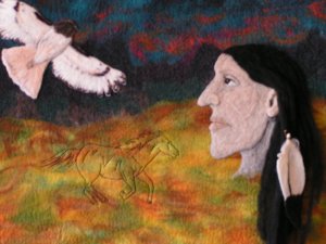I have revised this piece today. It is called Vision Quest. If you look at this post, you can see what I had originally done. I really didn’t like the shield portion as it seemed too overpowering and took away from the overall feel of the piece.