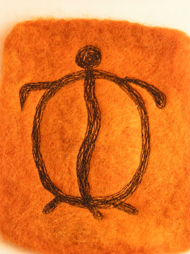 Here is my entry for the challenge this month on the Felting Forum. It is supposed to be practical. I haven’t had time to do much – this was made a couple of months ago. I use it for a coaster. It was my first experiment with thread sketching on felt.