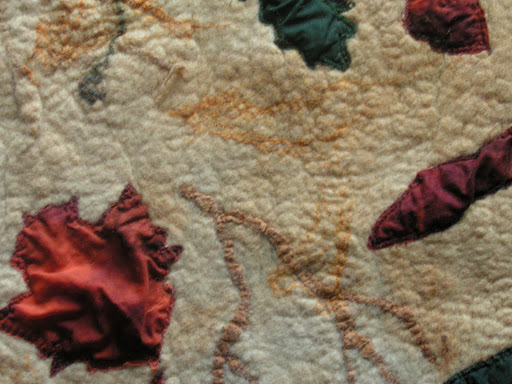 Here’s a peak at what I’ve been working on. It’s a very large piece currently and I’m considering writing an article on the whole process and submitting it to some magazines. We’ll see how that goes. It was a bit frustrating today as my sewing machine was giving me fits. Not really the sewing machine’s fault as the piece was too thick for sewing really. But I kept going and finally managed to get this step complete. It’s drying now and then on to the next step.