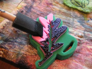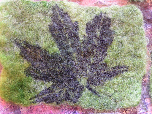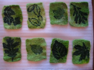 And after steaming and rinsing. It worked!! Now I’m going to do a little stitching on these. This was great fun and even though you can’t get a lot of detail on the felt, it still gives a good imprint if you use a chunky stamp or simple stencil without a lot of detail.