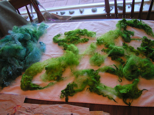 Here are some Wensleydale locks that I dyed as well. Some are blue/green and the others are the same green that I dyed the coasters with first.