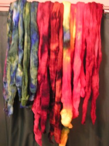 Here’s a close up. They are drying. Now I have lots of dyed wool to hopefully get through all the Christmas gifts I am making. After Christmas, I always say “I’m not making all those Christmas gifts next year,” but somehow, I always find myself in November and December busy making gifts. Why is that?