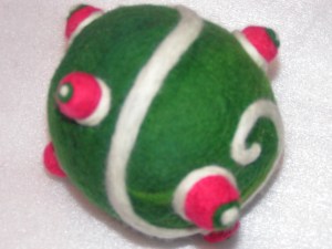 Here are a couple of Christmas ornaments that I’m giving as gifts this year. I’ve got 6 more to make. The ball is wet felted around a whiffle ball with a jingle bell inside. I then needle felted the decorations on the outside. I need to add a small loop for hanging but otherwise they are complete. I have completed another set of coasters but I can’t show those as they are for my sister and she occasionally reads the blog so they will have to wait until after Christmas until show and tell.