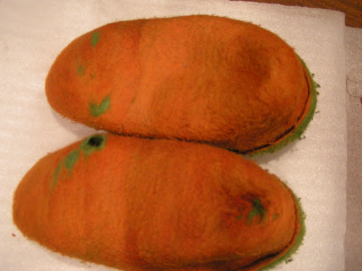 The slipper that I felted several years ago have given up the ghost. So I needed new ones.