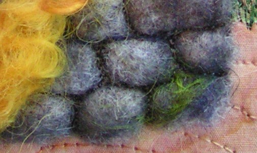 the free motion embroidery is getting closer to the top of my list of things todo. it all your fault yours embelisshed felt looks so cool. when you wet the fiber to set the twist did you hang it with a weight untill it dyed that usualy stops it trying to ply back on its self. it will regain the energy if you wet it again.
