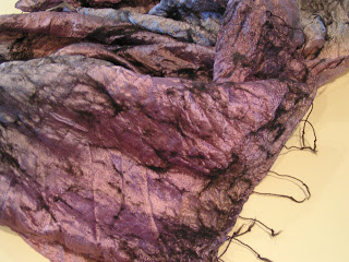 This is a scarf that I bought several years ago that I finally used for nuno felting. The scarf was already dyed this color and I added black and grey merino wool for the nuno felting. I didn’t use much wool at all so it is very light.