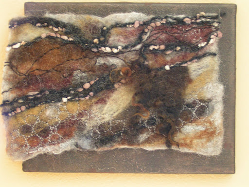 And a closeup. I like the painted canvas and how it makes the felt seem more professionally finished. I am going to be mounting more of my flat felt pieces this way.