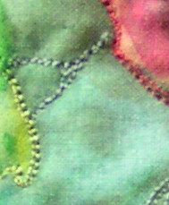 Here’s the back. She used some of her hand dyed fabric where she used a flour paste resist and then stamped another tree. Thanks Elizabeth! I love it.