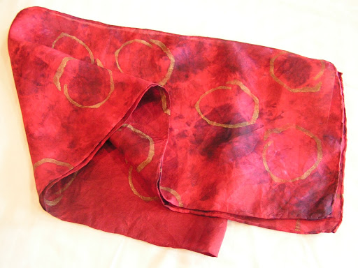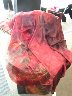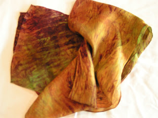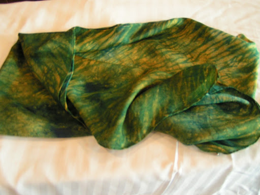 These are the scarves that I overdyed. They were a bit namby pamby before and I like them better now. The colors in the photos are a bit off, these are even a deeper color than shown.