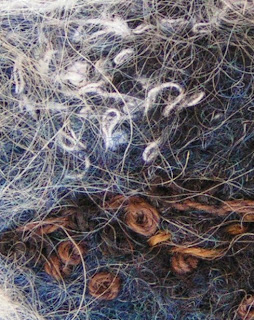 Here’s what I’ve been working on lately. It’s a piece of recycled wool skirt which I machine needle felted with various colors of wool. Then I drizzle stitched it in a the same colors of thread. I have a bit more drizzling to do and then I’ll make it into barrettes and brooches. I’ll show you the completed ones when I’m finished.