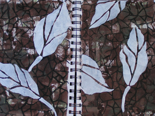 This one has three different leaf stencils used. I just used gesso through the stencil.