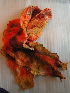 I do like the little circles of unfelted silk. I will do more of those but just dye differently or use already dyed wool for the next one.