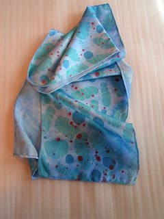 Here is one of the marbled scarves I made with our group at the first of the month. I over dyed it and again, in my favorite fall colors.