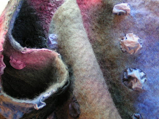 I do like the little circles of unfelted silk. I will do more of those but just dye differently or use already dyed wool for the next one.