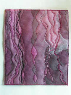 This piece was done for an assignment in my machine embroidery class. It is all about line. And again, organic line. I seem to avoid those straight lines. In this piece, the focus seems to be the overlapping lines in the center. It is too centered and I really like either edge better. Perhaps some lines going in a more diagonal direction would have helped?