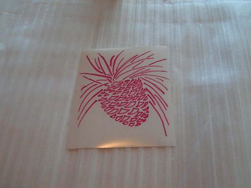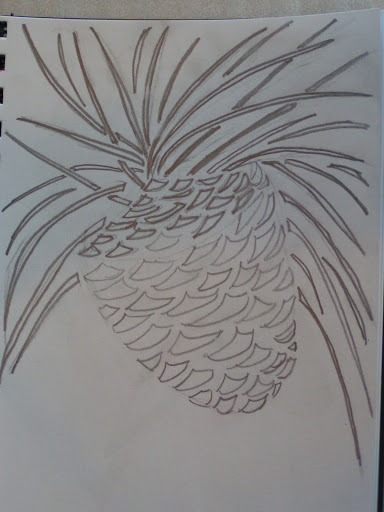 Here’s the sketch where I figured out how the stencil would work. I drew the big shape of the pine cone first and then drew the smaller pine cone bits (what are those called?). My friend thought it was a pineapple.