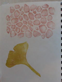 Here are the stamps in my studio journal. I seem to have lost my ginkgo leaf stamp somewhere in my studio. I’m sure it’s there somewhere…