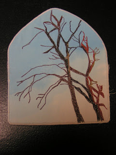 The page she made is beautiful. She hand painted the background and then machine stitched the branches against the sky. I love the simplicity.