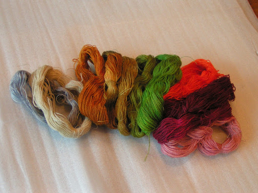 I’ve been working on getting all my embroidery supplies ready for my Level 1 Hand Embroidery class in February. This is lace weight wool that I made into skeins and dyed. I was trying for some earth tones, greens and a variety of rusty reds. Except for the reds, I got what I intended. I did make one bright orange for some lichen that I’m planning on embroidering. I have also ordered some supplies that I will show you after they arrive.