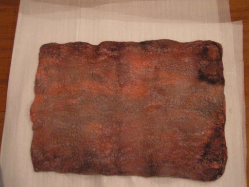 I love how your felted piece looks, wish I did something like that for my new piece, would have been a better idea than using fabric.I have some wool floss like that, too bright, so need to dull it down and maybe get some variation too, then I can use it in projects.Debbie