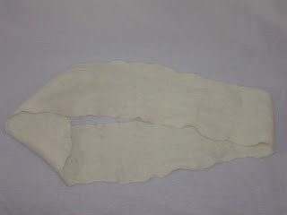 So how many of you remember what a Mobius strip is? The definition on Wikipedia says that it is a surface with only one side and only one boundary component. Essentially is is a circle of something flat with a twist in it. I had seen Mobius knitted scarves but when Zed challenged us to make something with a twist, curls or swirls, I thought I should try a felted Mobius scarf. Sorry that it isn’t the best of photos. I took it last night and photos of white felt objects are really hard for me. I started this scarf at our felting party and finished it at home. I wasn’t sure it was going to work out but I actually like it and I may even wear it. I hardly ever wear anything that I make so that would be a change. It is made from the local merino I bought and is really fairly light and airy. I can’t decide whether I should dye it or leave it white. What do you think?