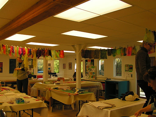 Here are some other class members hanging up their dyed fabric and threads to dry. It looked like colorful prayer flags all around the room.