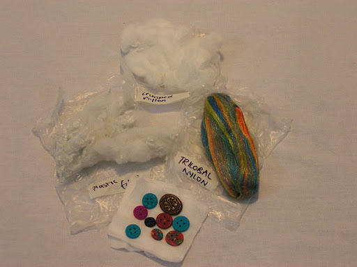 When I got home I found a package from the UK. Zed had sent me samples of nylon and plastic fiber to experiment and add to felt. Thanks Zed – it was a wonderful surprise to find this package waiting for me when I got home.