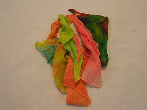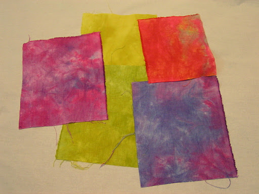 Here are some photos of my dyed fabrics. We will be using these over the entire course of the class. This is silk organza. We used Procion MX dyes. I usually use acid dyes at home but I’ll be ordering some Procion MX as it is part of the homework to have another dye session.