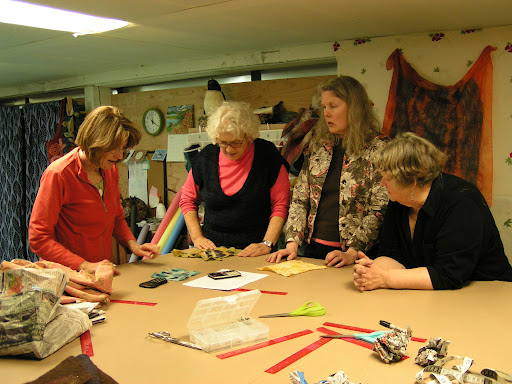 On Friday, I taught the first session of the Cocoon Nuno Jacket class at Camas Creek Yarn. I had four students but one had to leave early. We worked on making a sample and then the rest of the day was spent designing, measuring, figuring and deciding what yardage was needed for each jacket.