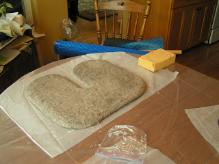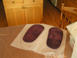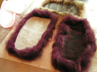 Here are the wet down and rubbed slippers for hubby. It took lots of rubbing to get the wool to start holding together.