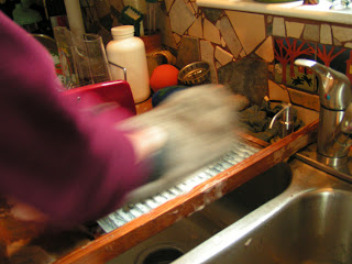 We got really busy after that with rolling and fulling and forgot to take any photos. But here is a photo of me fulling hubby’s slippers on the washboard. Boy am I fast πŸ™‚