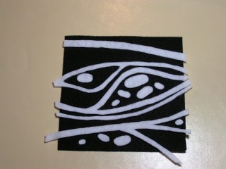 I finished cutting out the black and white applique. Some of those long strips were a bit tricky to cut out.
