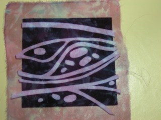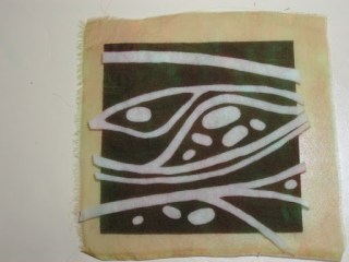 Since it is going to be a “shadow” applique, I tried out various pieces of silk organza to cover the felt.
