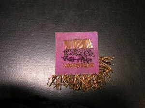 I was busy at work today collecting and organizing items for an auction that one of the organizations for which I am a board member is holding this Saturday. So it was a little crazy and not much beading happened. Maybe an inch of fringe.